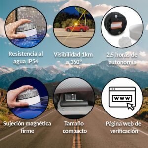 Cumple con la normativa de la DGT para vehículos en España. Sustituye a los triángulos de emergencia tradicionales, permitiéndote señalizar peligros sin bajarte del coche, evitando situaciones de riesgo en autovías.