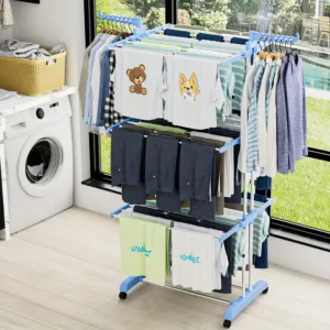 Me encanta la practicidad de este tendedero vertical plegable, sus ruedas glisan suavemente y se mueve por toda la casa sin esfuerzo.